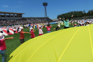 参加した競技は、「動物村の大運動会」。動物に変身した子どもたちは、おおかみにしっぽを取られないように逃げる、という競技でした。