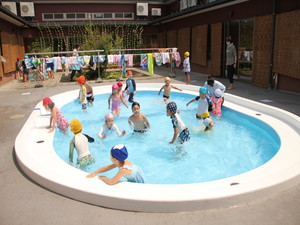 ビニールプールでは、スーパーボールすくいです。みんな夢中になってすくっていますね。 |