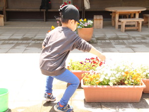 誰から頼まれたわけでもなく、「今日は暑いから、お水を上げなくちゃ」と、お友達がプランターのお花にお水をあげていました。