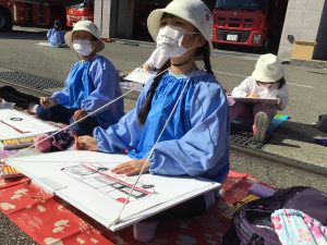 1・2年生の写生会が市内の消防署で行われました。目の前にある消防車や救急車に子どもたちは「自分の両手を広げても、それより大きい!」と大喜び!