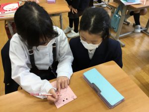 どの児童も楽しく、クラスで協力して仕事をすることができました。友達から届いたはがきに、児童はとても喜んでいました。