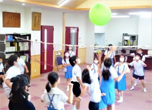 あいにくの雨模様でしたので、屋内での実施となりましたが、体育館やホール、各教室において、1~6年の全校児童が11個の縦割り班に分かれ、6年生の班長さんのリーダーシップのもと、どの班も楽しそうに、カードゲームやレクリエーション、ドッジボール、風船バレーなどを楽しんでいました。いずれの会場からも、楽しそうな笑い声や拍手などが聞こえ、梅雨の合間の賑やかなひと時となりました。