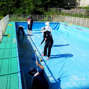 また、この日は夏休み明けの水泳学習のためにプールの清掃も行いました。新品のようにきれいなプールで児童と学習できるのが楽しみになりました。