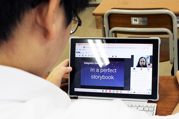 高校1年生が取り組んでいるオンライン英会話プログラム「My Voice」では、フィリピンの英語講師と自宅からオンラインで対話。