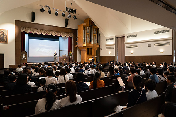 生徒会による行事・部活動紹介、ミッション生の一日、施設紹介