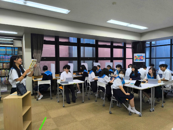 生徒たちは夏休みから取り組んできた探究学習の集大成として、クラスごとにビブリオバトルを行いました。