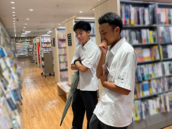 参加した図書委員有志は、学校のみんなに読んでもらいたい本を直接手に取って確認しました。購入した本は図書館に展示しますので、ぜひ利用してください!