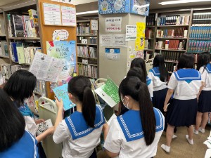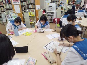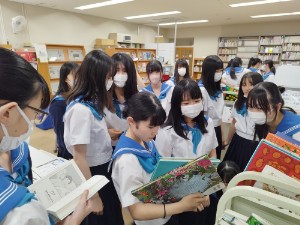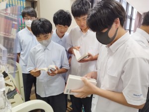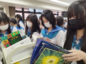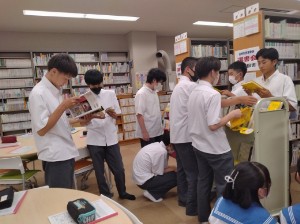 1年生の後半クラス(106H~110H)が、探究学習「サイエンスQuest!」に向けて本選びを行いました。