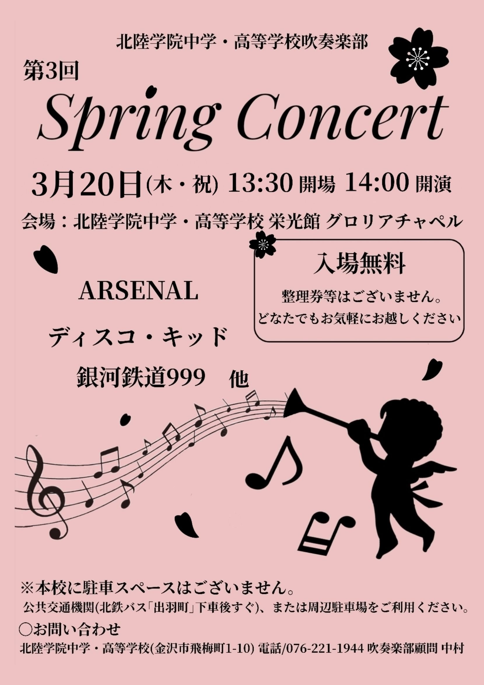 吹奏楽部 第3回 Spring Concert のご案内 3/20 14:00~