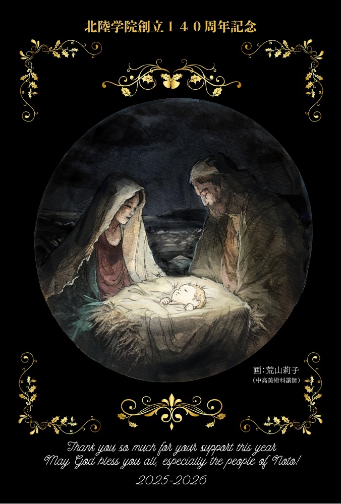 これからも北陸学院は、被災された方々に寄り添い、希望の灯を絶やさぬよう歩んでまいります。 皆さまの上に、豊かなクリスマスの祝福と平安がありますようお祈り申し上げます。