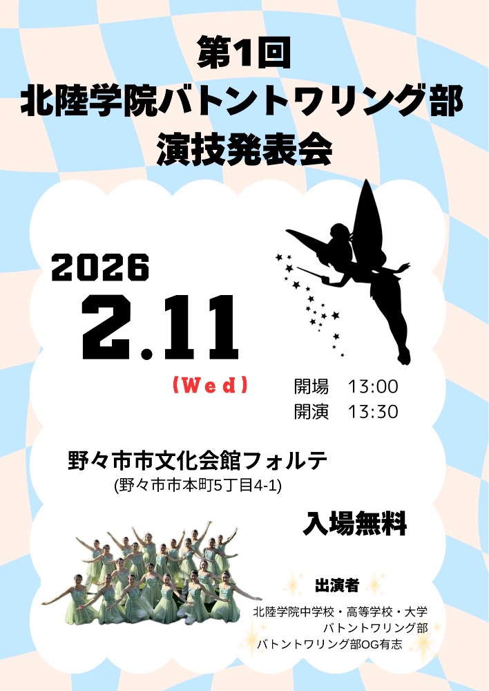 第1回 北陸学院バトントワリング部 演技発表会のお知らせ