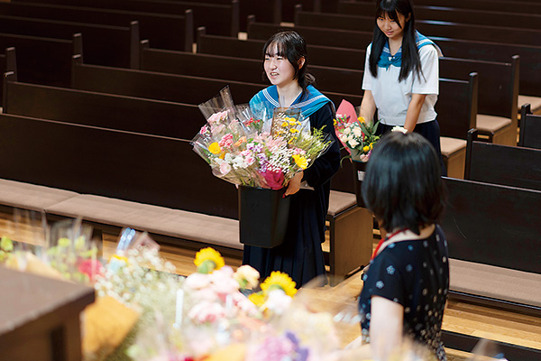本校では1年を通して様々な宗教行事が行われます。各クラスから選出される宗教委員は、礼拝準備で聖書の朗読箇所を掲示したり、宗教行事のサポートをしたりします。毎朝欠かさず礼拝がおこなわれる本校では重要な役割です。