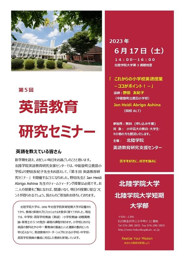 第5回英語教育研究セミナーを実施いたします。