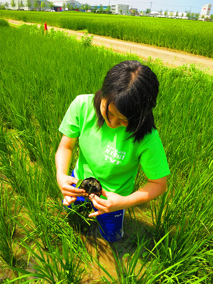 短期間のうちに稲よりも成長する雑草に悪戦苦闘しながらも、第1弾でやり残した部分の草取りを行いました。