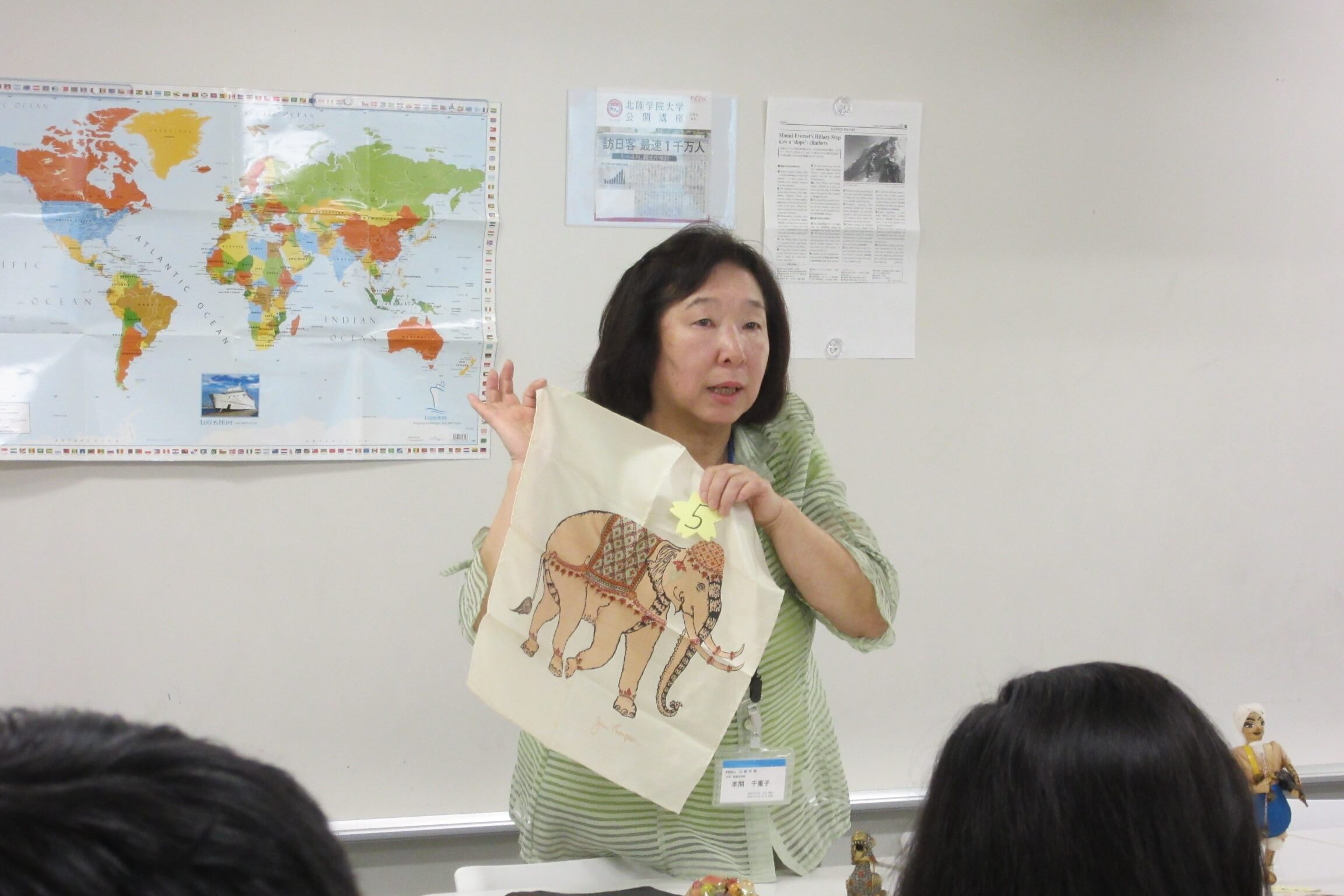 講師に本間千重子氏をお招きし、ツアーコンダクターとして世界約60か国以上の国々に行かれた体験談や観光と旅行の違い、ツアー業務についてお話を伺いました。