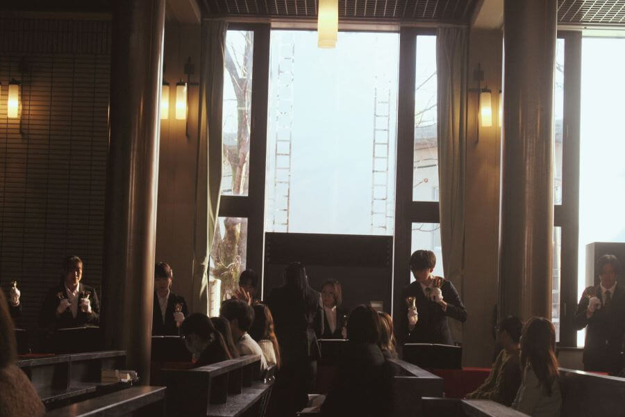 12月20日(金)にクリスマス礼拝が行われました。キャンドルに明かりを灯し、聖歌隊の合唱、ハンドベルクラブによる讃美演奏、聖書からのメッセージを通して、皆で救い主イエス・キリストの誕生をお祝いしました。礼拝後には学科ごとにお祝いの会を行い、食事をしながらジェスチャーゲームや難読漢字クイズなどを通じて、皆で楽しく過ごし、祝福を分け合いました。本学では本当のクリスマスを体験し、あたたかな心で、分かち合ったり、おすそ分けしたりする心が育まれます。皆さんにもクリスマスの祝福が豊かにありますように。