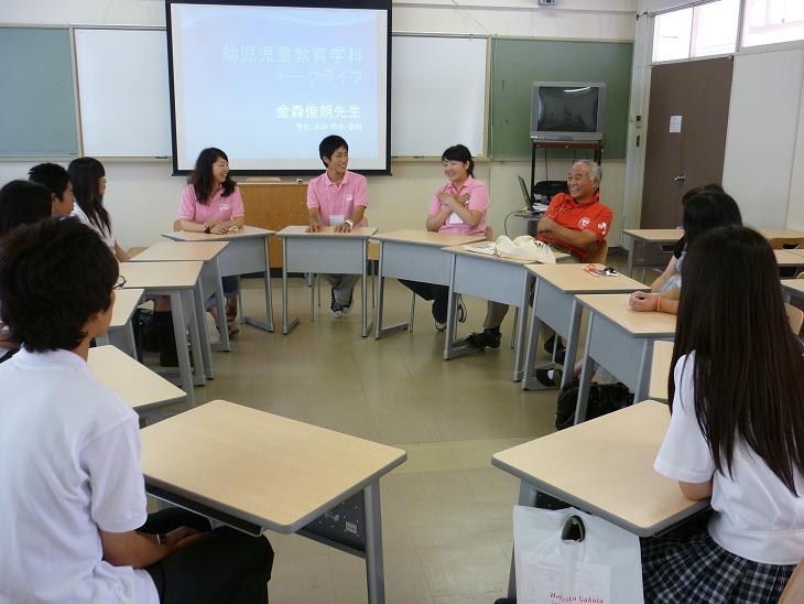 残暑厳しい中でも多くの高校生や保護者が来学し,