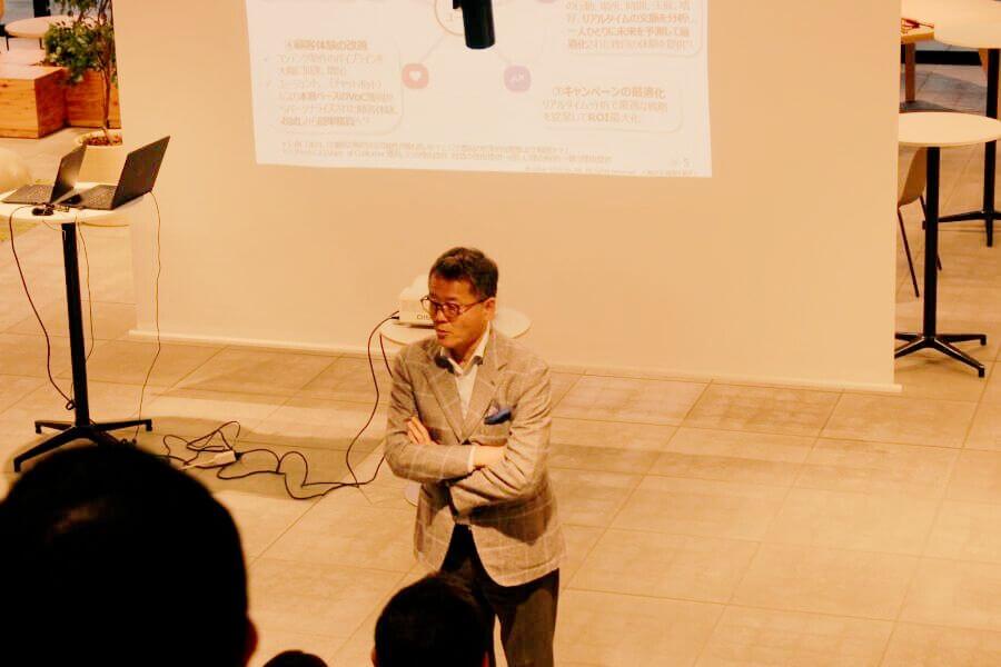 当日は、開会の辞に続き、北陸学院大学 社会学部 社会マネジメント学科 教授就任予定の菅野誠二氏によるミニレクチャー「金沢の現在と未来~変遷する顧客価値と地域の事業チャンス~」を実施。地域社会の変化と大学教育の役割について、具体的な事例を交えながら講演が行われました。