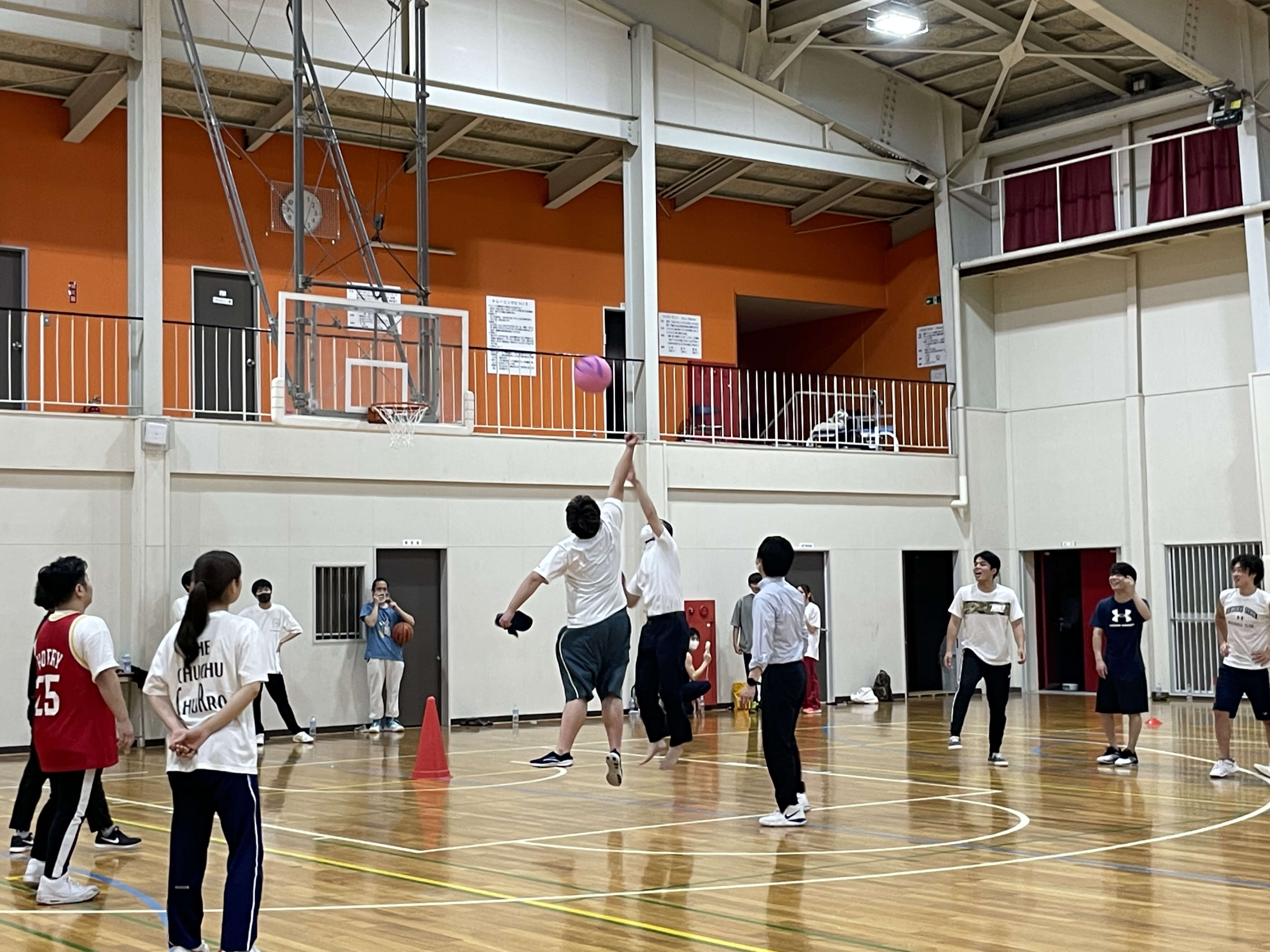男子はオーバーヘッドまたはチェストから投げるというハンデや、人数が少ないチームには指名した人をケンケンで投げさせるようにする特殊ルールを設け、男女が楽しめるような形式で行いました。