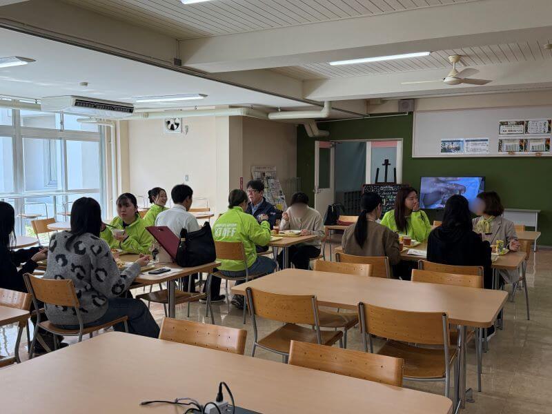 その後、スクールバスで三小牛キャンパスへ移動し、大学全体説明会を開催。続くランチ体験では、健康科学部監修によるスペシャルメニューを提供し、本学ならではの食の魅力も感じていただきました。