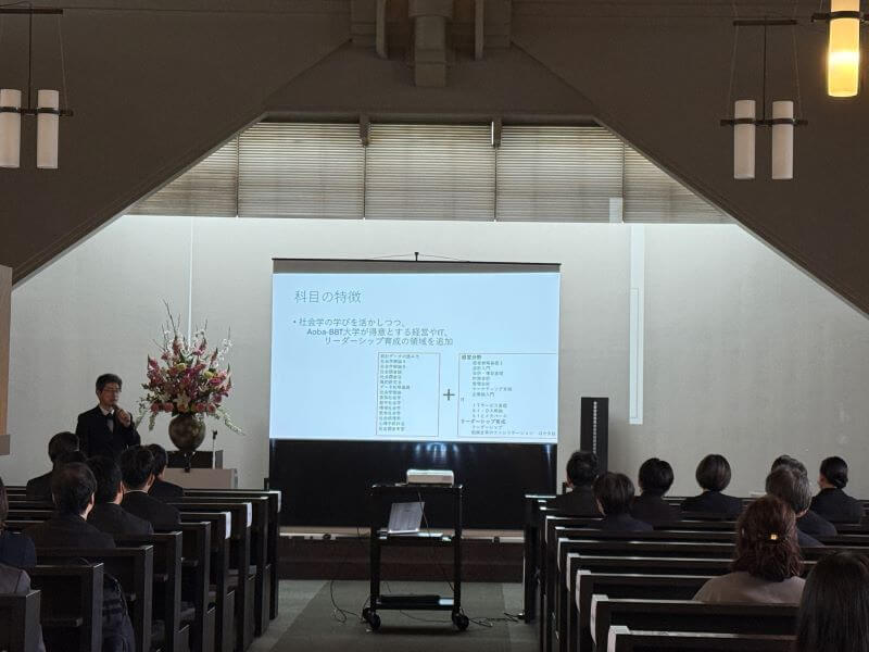 続いて実施された研修会では、今年度4月開設の大学社会学部社会マネジメント学科の紹介が行われ、本学院における教育の取り組みや方向性について理解を深める機会となりました。