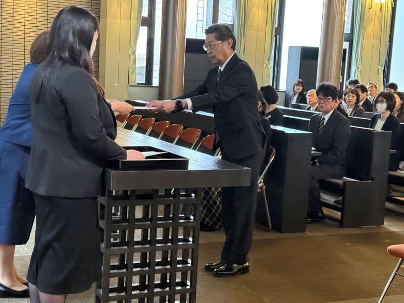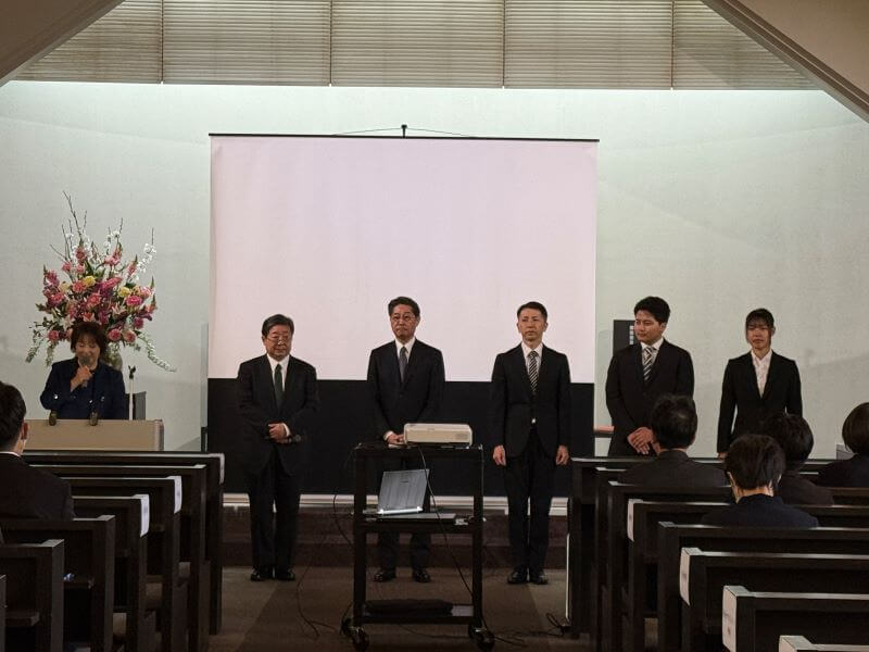 礼拝後のプログラムでは、学院長より新年度の開始にあたっての挨拶があり、続いて新任教職員の紹介および挨拶が行われました。新たに本学院の一員となった教職員一人ひとりが、それぞれの思いを胸に抱負を述べ、会場は新しい出会いとこれからの歩みへの期待に包まれました。