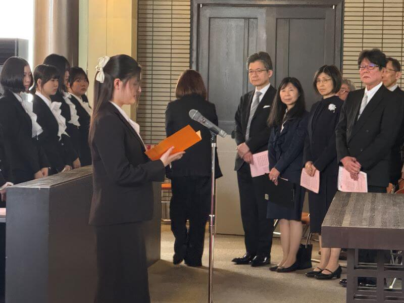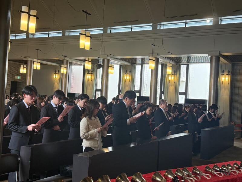 また、「神があなたを選ばれた」と題した説教が学長より語られ、新入生一人ひとりがこれから始まる歩みに思いを深めました。入学礼拝を通して、それぞれが希望と決意を胸に刻む機会となりました。今後の学生生活が実り多きものとなるよう、心よりお祈りいたします。